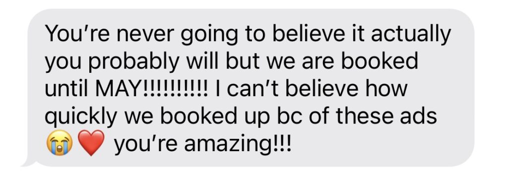 That’s where I come in. I help Wellness Practices turn ads into booked-out calendars, without stress, wasted ad spend, or Groupon gimmicks.